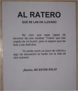 Asimismo, la falta de educación se suele poner de relieve en las juntas de comunidades de vecinos, a las que por cierto, cada vez asiste menos copropietarias serias, entre otros motivos, por el «guirigay» que normalmente se suele producir por, entre otros motivos, la carencia de la más mínima educación y falta de respeto que algunas de las asistentes suelen «dispensar» a otras convecinas, queriendo imponer su criterio «a toda costa», por encima de lo que disponga la Ley 49/1960, de la Propiedad Horizontal, actualizada al 5 de Marzo de 2019, y los correspondientes estatutos de la comunidad, de los que a veces se carecen; y, por si alguien no lo sabe, aunque creo que sí, pues todas «nos consideramos muy listas», se puede obtener una copia en el Registro de la Propiedad.